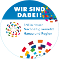 Ein Aufkleber des Netwzwerks mit der Aufschrifft "Wir sind dabei - Nachhaltig vernetzt Hanau und Region."