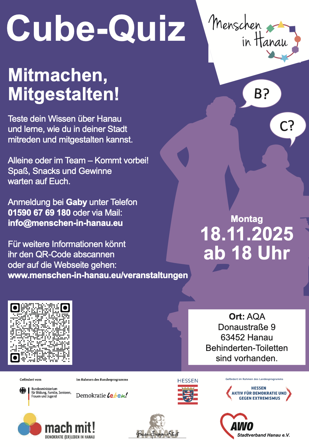 Auf lilanem Hintergrund Figuren der Gebrüder Grimm + die Einladung zum Pub-Quiz am 18.111